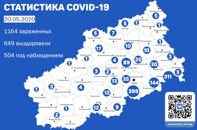 - По информации регионального оперативного штаба по предупреждению завоза и распространения коронавирусной инфекции в Тверской области подтверждено 20 новых случаев коронавирусной инфекции.