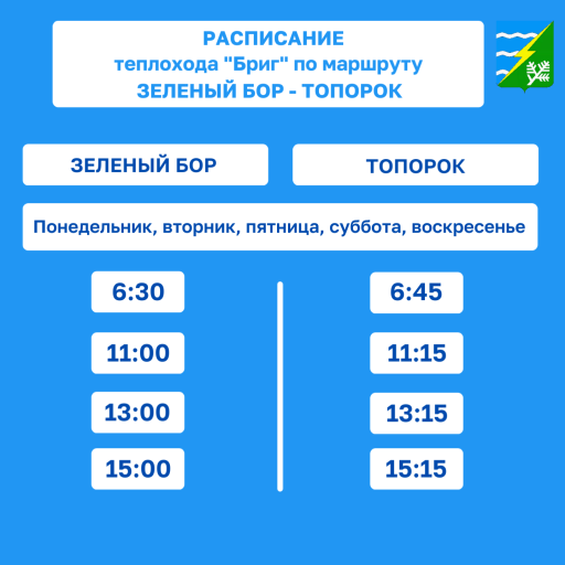 Будет организована перевозка пассажиров пассажирским теплоходом «Бриг» . Расписание прилагаем.
