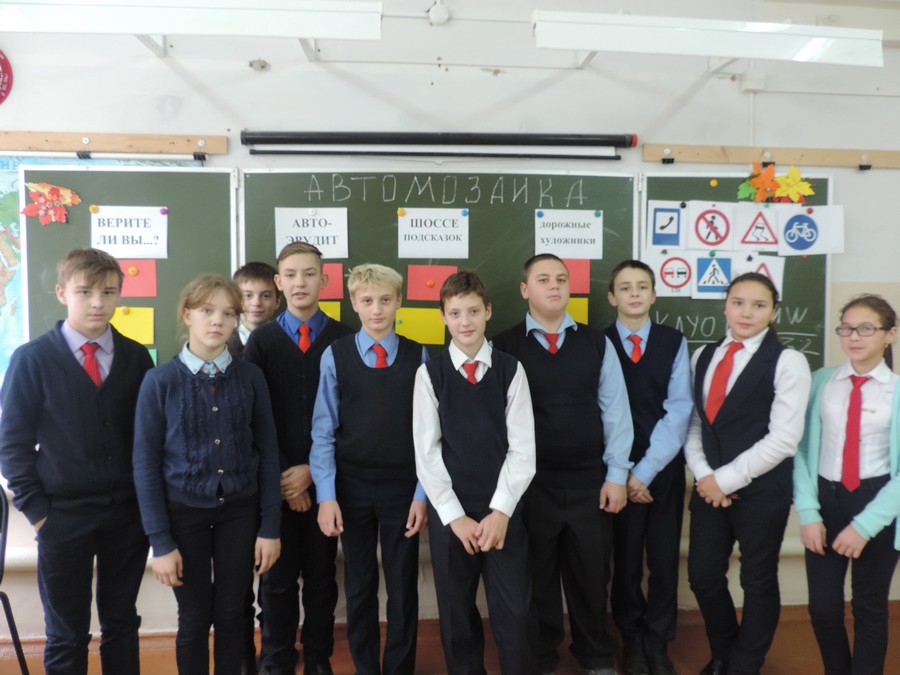 На прошлой неделе ученицы 10 класса провели викторину на знание ПДД среди учащихся начальной школы. А сегодня,13 октября, среди двух команд из 7 класса разыгралась нелегкая борьба за право быть лучшим знатоком правил дорожного движения.