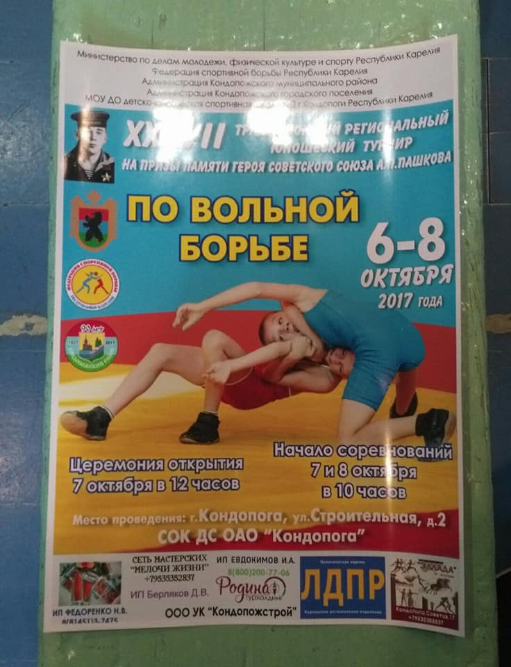 С 6 по 8 октября в г. Кондопога прошёл ХХХVII традиционный Всероссийский турнир по вольной борьбе среди юношей и девушек. В соревнованиях приняли участие около трёхсот сильнейших спортсменов из Москвы, Санкт-Петербурга, Петрозаводска, Кондополги, Великого Новгорода, Раменского, Тихвина, Вологды,Старой Русы, Архангельска, Мурмонска, Кингисеппа, Всеволжска и других городов. Тверской регион на соревнованиях представляла сборная команда борцов, являющихся воспитанниками тренера Алексея Овчинникова.