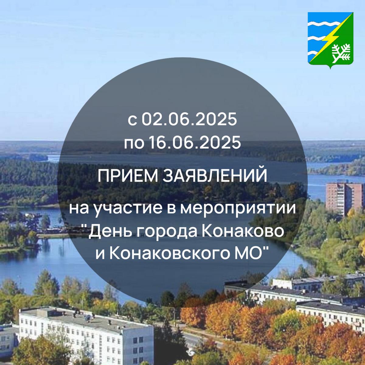 Со 02.06.2025 по 16.06.2025 (до 17.00 включительно) начинается прием заявлений на участие в мероприятии «День города Конаково и Конаковского муниципального округа».